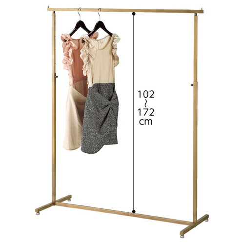 ●サイズ:W90×D45×H111〜181cm●バー内寸:W77cm ハンガーパイプ:14×24mm角 外パイプ:22mm角●素材・加工:スチール製 アンティークゴールドメッキ●重量:5.5kg●耐荷重:30kg●組立式●10cm間隔で7段階に高さ調整ができます。
