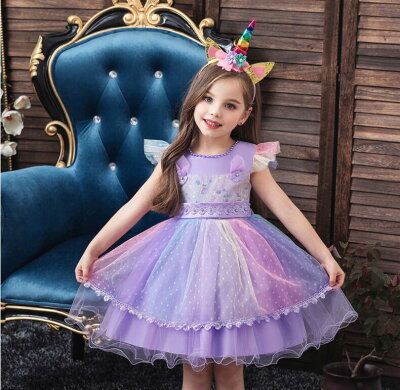ユニコーン 女の子 ワンピース ドレス 精霊 ハロウィン衣装 ユニコーン コスプレ ティンカーベル チュチュ カチューシャ付き 精霊 キッズ コスチューム 服 翼 虹色 かわいい 子ども パーティー 演出服 ステージ