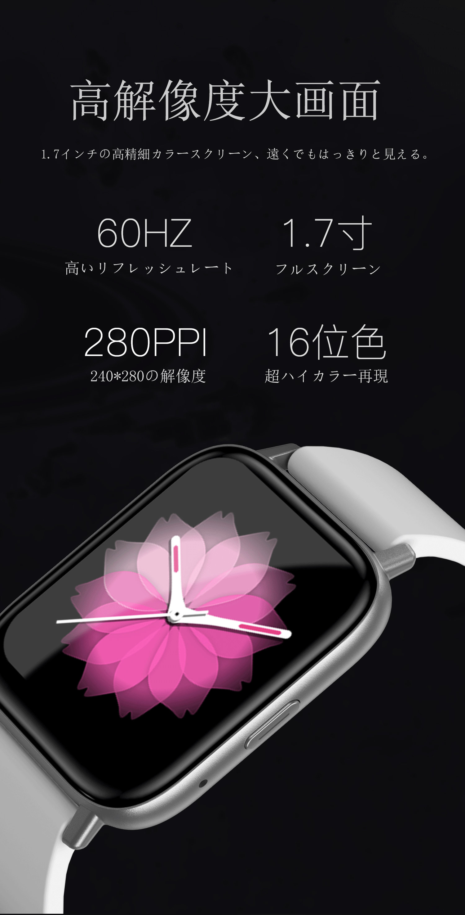 関連キーワードスマートウォッチ スポーツウォッチ Bluetooth通話機能 1.7インチ大画面 IP67防水 体温測定 心拍計 歩数計 腕時計 レディース腕時計 メンズ腕時計 日本語 着信通知 睡眠計 睡眠検測 アラーム 時計 腕 リストバンド iphone/android 対応 母の日 父の日 バレンタイン プレゼント 腕時計 恋人 友達 キッズ 子供 父 母 プレゼント ギフト お歳暮 敬老の日 バレンタインデー ホワイトデー 卒業式 入学式 クリスマス クリスマスプレゼント 誕生日 還暦祝い お祝い 母の日ギフト おすすめ 記念 グッズ 父の日ギフト ランニングウォッチ 子供 スマートウォッチ line 対応 スマートウォッチ iphone 対応 スマートウォッチ iphone 対応 スマートウォッチ android対応 スポーツ時計 ストップウォッチ付き腕時計 スマートウォッチ iphone ウォッチ ランニング ランニング腕時計 ランニング 腕時計 ランニング 走行 距離 時計スマートウォッチ 血圧 1.7インチ大画面 Bluetooth通話機能 IP68防水 皮膚温変動検知 血中酸素濃度測定 心拍数測定 歩数計 消費カロリー 睡眠検測 着信通知 スマートウォッチ血圧 iphone 対応 android 対応 男女兼用腕時計 ペアウォッチ スマートウォッチ レディース 通話機能 腕時計 メンズ腕時計 レディース腕時計 日常生活健康管理 長い待機時間 腕上げ点灯 父 母 ギフト プレゼント ギフト 父の日 11