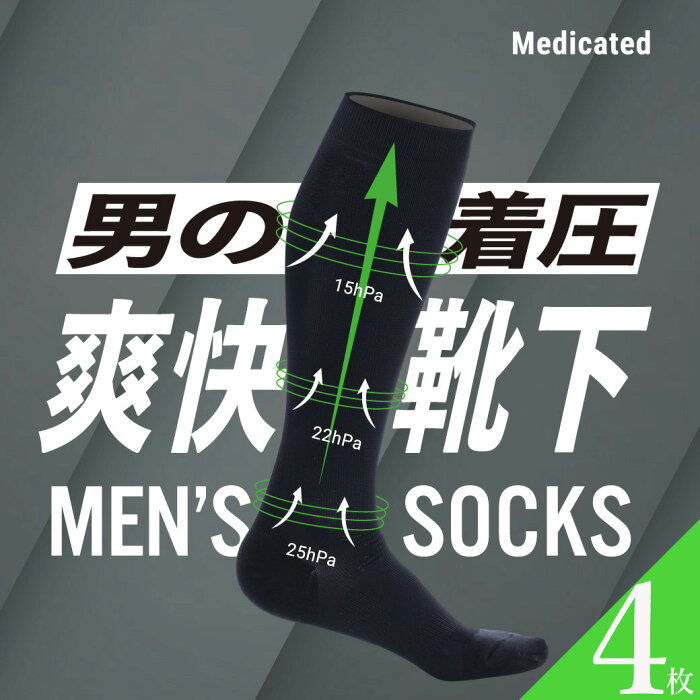 4枚|お得クーポン配布中★着圧ソックス 男の着圧 爽快靴下 メンズ 男性用 一般医療機器 ハイソックス ふくらはぎ 夜間頻尿 むくみ予防 血行促進 静脈還流 夜間多尿対策 頻尿 医療用 加圧靴下 弾性ストッキング エコノミークラス症候群 ビジネスソックス ゴルフ