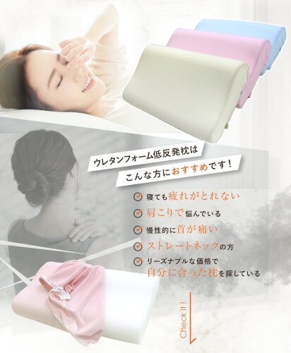 品質 枕カバー:ポリエステル100%中材:低反発ウレタンフォーム(中国製)サイズ 約30×50×7〜9cmカラークリーム、ピンク、ブルー 洗濯 ・ウレタンフォームは手洗いで洗えます。