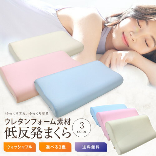 枕 送料無料 ウォッシャブル低反発枕 (WS-3050) 約30×50×7〜9cm 波型 高通気低反発ウレタンフォーム 洗える クリーム ピンク ブルー オールシーズン まくら ピロー 快眠枕 新生活 車中泊 プレゼント 選べる3色