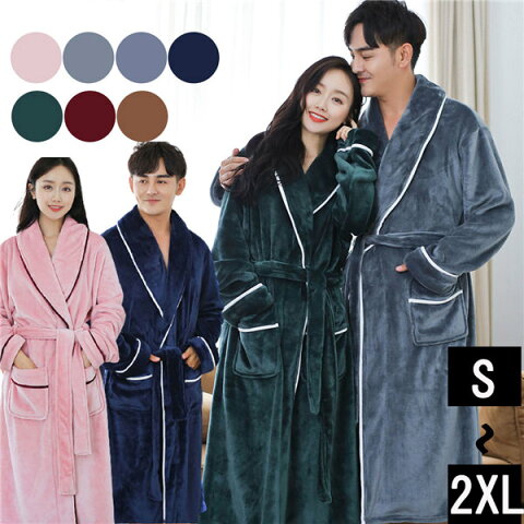 バスローブ ルームウェア ガウン ロング丈 もこもこ 冬 長袖 6色 ペアパジャマ レディース ナイトガウン 着る毛布 前開き 寝巻き お風呂上り カップル 裏起毛 メンズ パジャマ 可愛い 部屋着 お揃いペア 結婚祝い クリスマス プレゼント ギフト バレンタイン 暖かい