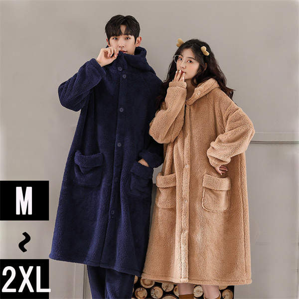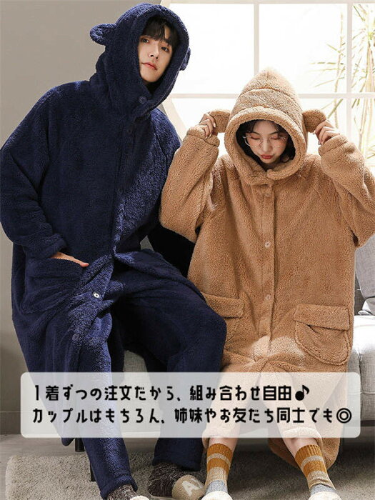 ルームウェア もこもこ バスローブ ペアパジャマ ナイトガウン レディース パジャマ 着る毛布 前開き 冬 長袖 パジャマ 寝巻き カップル 裏起毛 メンズ パジャマ 可愛い 部屋着 お揃いペア 結婚祝い プレゼント 暖かい ギフト バレンタイン お風呂上りdh369d3d3x2