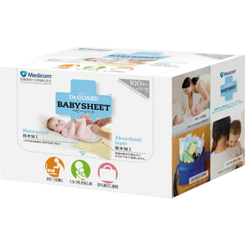 商品名:ベビーシート100枚入りブランド:ドクターガード原産国:中華人民共和国おむつ替え、その他、使い方いろいろな万能シート表面は吸水仕様、裏面は防水仕様なので、水分が下まで浸透しません。