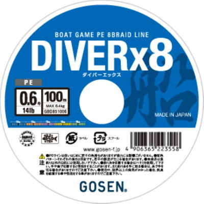 ゴーセン GOSEN DIVERX8 ダイバーエックスエイト 100m 5号/6号/8号/10号/12号 10mマルチカラー PEライン