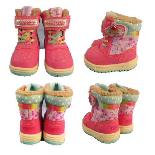 【子供防寒靴】☆ウィンターカジュアルブーツコレクション 防寒 ウレタン 履き口ボア マジックテープ式 ベビー・キッズ ウィンターブーツ(スノーブーツ) ピンク/パープル 防水設計 フットブランケット◇ムーンスター◇