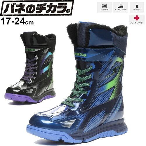 キッズ 男の子 ウィンターブーツ ジュニア 17-24.0cm シューズ 子供靴/バネのチカラ。ムーンスター スーパースター/防水 防寒 防滑 スパイク付 スノーブーツ/男児 ブラック ネイビー 冬靴 スノトレ くつ/SS-WPJ105SP