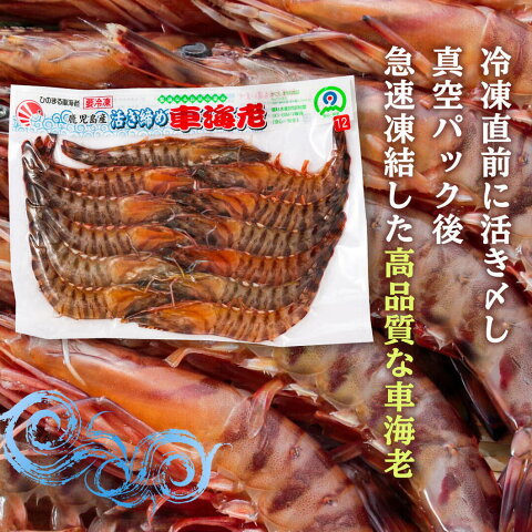 【商品特徴】冷凍直前に活き〆し、真空パック後、急速凍結した高品質な車海老。
