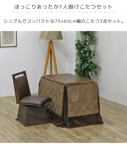 こたつ 3点セット テーブル ダイニングこたつセット ハイタイプ 幅90cm こたつ布団 こたつ用チェア 回転式チェア 一人暮らし 1人用こたつ ダイニング デスク 机 ブラウン ナチュラル
