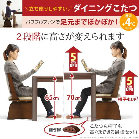 【セット構成】こたつx1台 布団x1枚 回転椅子x4脚【仕様】■こたつ天板:繊維板(転写プリント) 脚部:天然木(ラバーウッド)薄型石英管ヒーター(500W・中間スイッチ式)◎一部組立品(脚部取付)■こたつ布団[しじら]表地:綿100% 裏地:アクリル100% 中綿:ポリエステル100%[レンガ・ベージュ]表地・裏地:ポリエステル100%(はっ水フランネル) 中綿:ポリエステル100%■回転椅子フレーム:天然木 (アカシア) 座面:合成皮革◎一部組立品(脚部取付)【サイズ】■こたつ幅135x奥行80x高さ70/65cm・約22kg 天板:厚み30mm■布団[しじら織り]295x240cm・中綿約1.35kg[レンガ・ベージュ]297x242cm・中綿約680g■回転椅子幅46.5x奥行49x高さ75(70)cm・約9kg株式会社ナカムラ(I-2700131)【送料について】北海道、沖縄、離島は別途送料を頂きます。